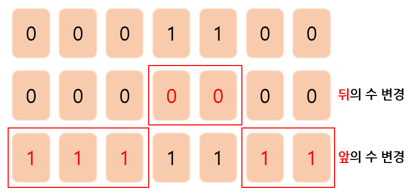 - 연속되는 수를 모두 뒤집어야 한다.